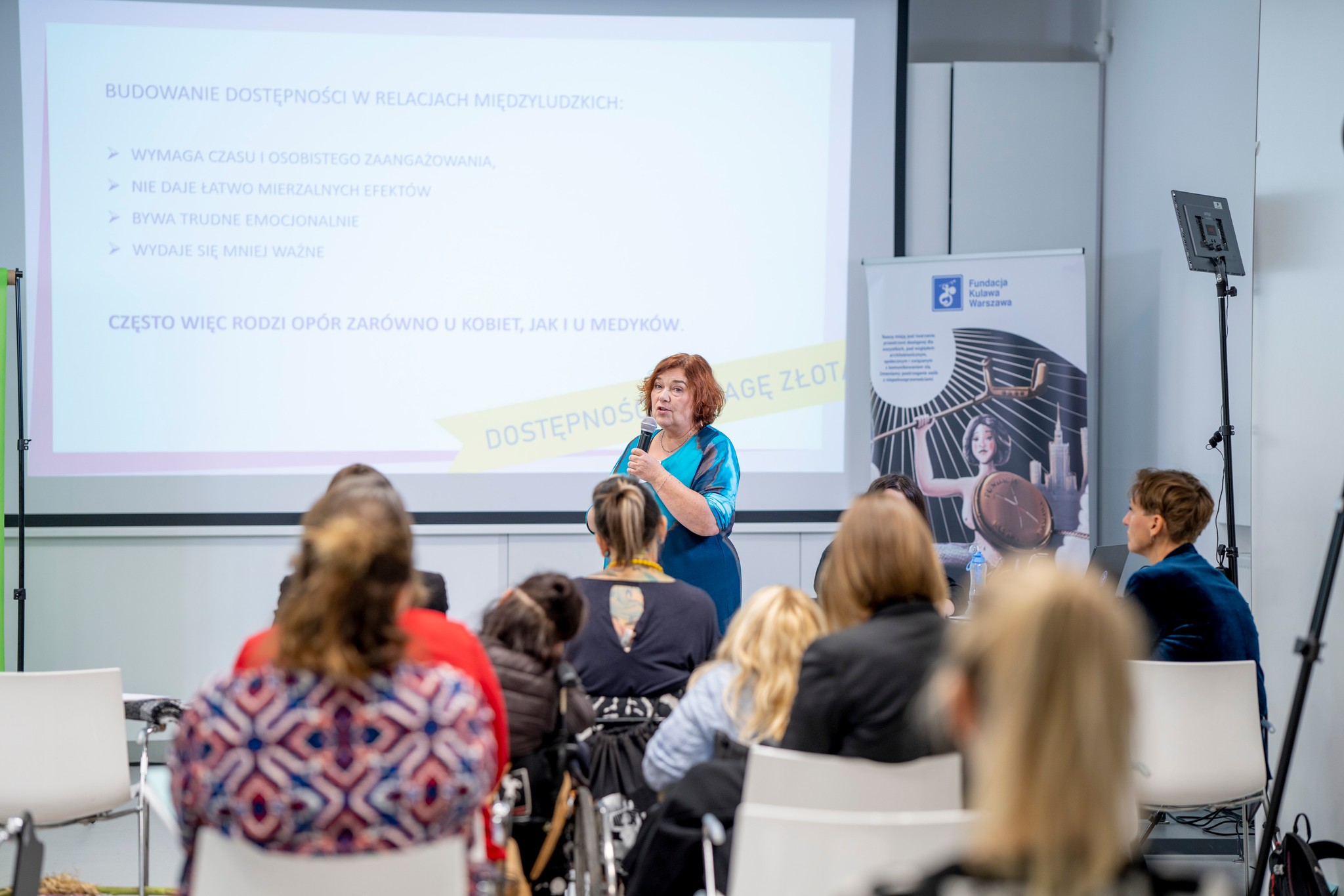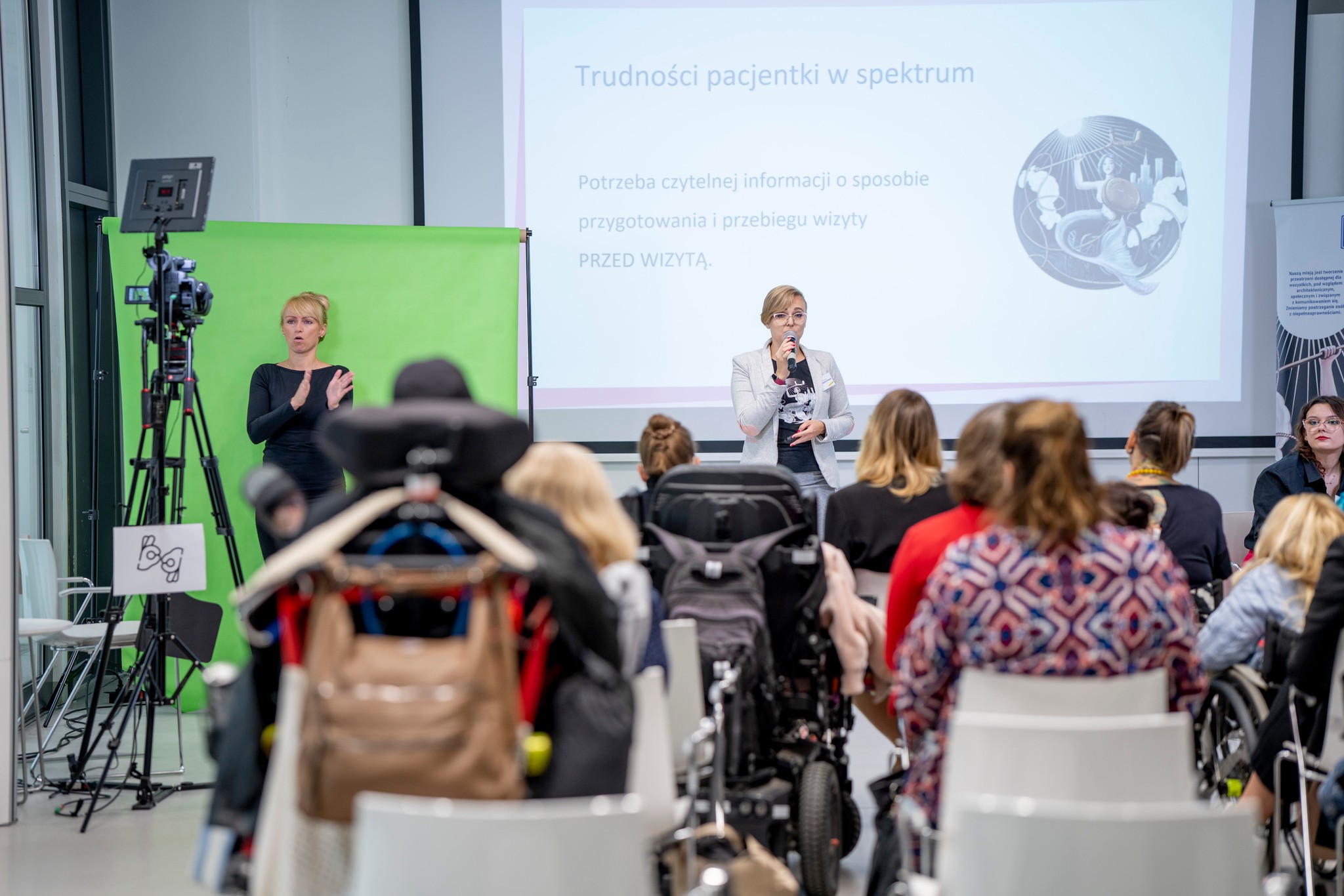 Głos otrzymały kobiety z niepełnosprawnościami, a także przedstawicielki personelu medycznego. Poruszyliśmy również temat sprzętu, którego obecność jest konieczna w gabinetach, aby ginekologia była dostępna. Przestrzeń konferencji była dostępna dla osób z niepełnosprawnościami, natomiast po wydarzeniu dokonaliśmy ewaluacji dostępności. Na miejscu znajdowali się wolontariusze, dzięki którym dostępne było skorzystanie z asystentury dla osób z niepełnosprawnością.